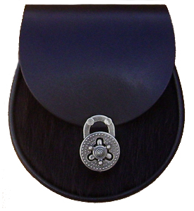 Sporran with black bovine hair front and an antique turn lock fastener.(Straps and chains are included).